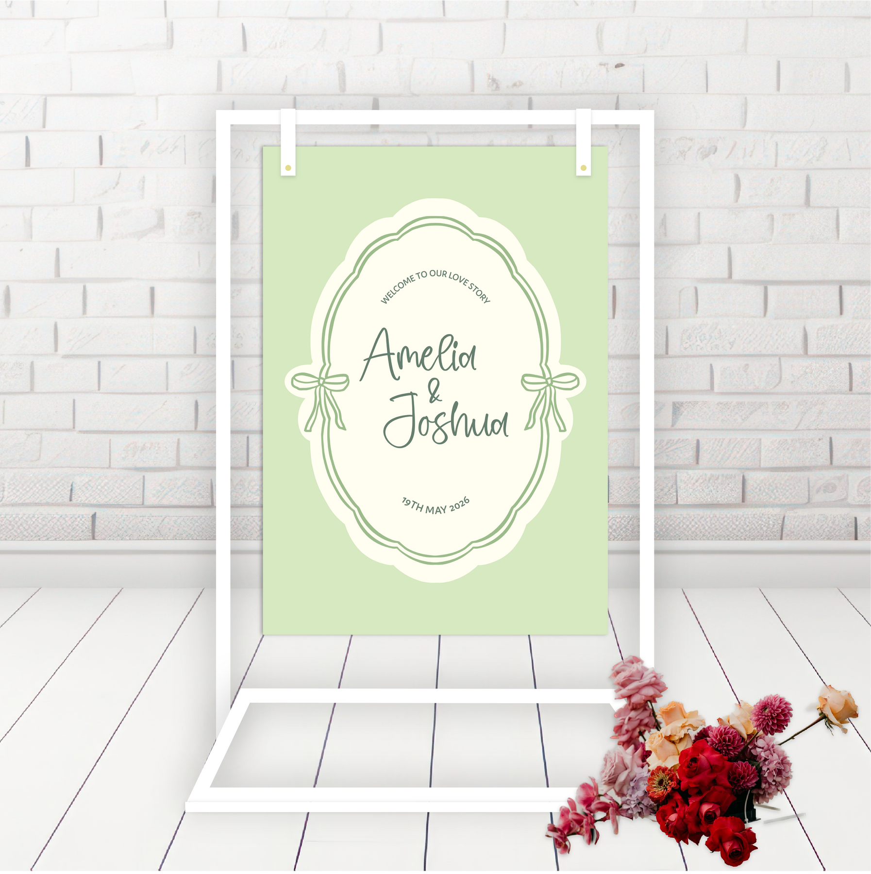 Stand and and any accessories featured in images are not included.  Price is for Welcome sign only.